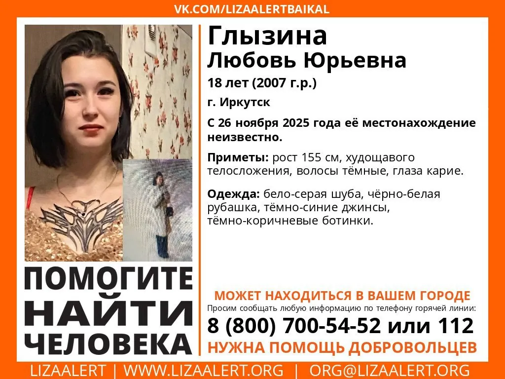 Пропала #Глызина Любовь Юрьевна, 18 лет, г. #Иркутск.