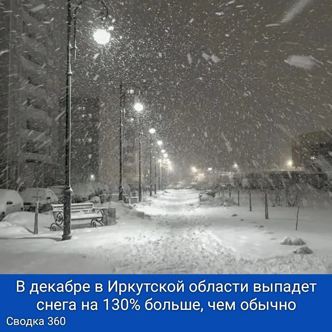 Синоптики предсказывают, что в декабре в Иркутской области выпадет снега на 130% больше, чем обычно.