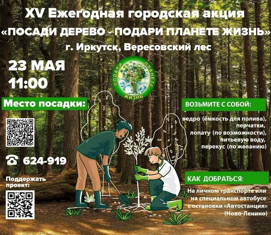 Друзья, у нас для вас добрая новость из соседнего Иркутска, которая касается экологии всего Прибайкалья. 23 мая 2026 года в 15-й раз пройдёт городская акция «Посади дерево — подари планете жизнь».