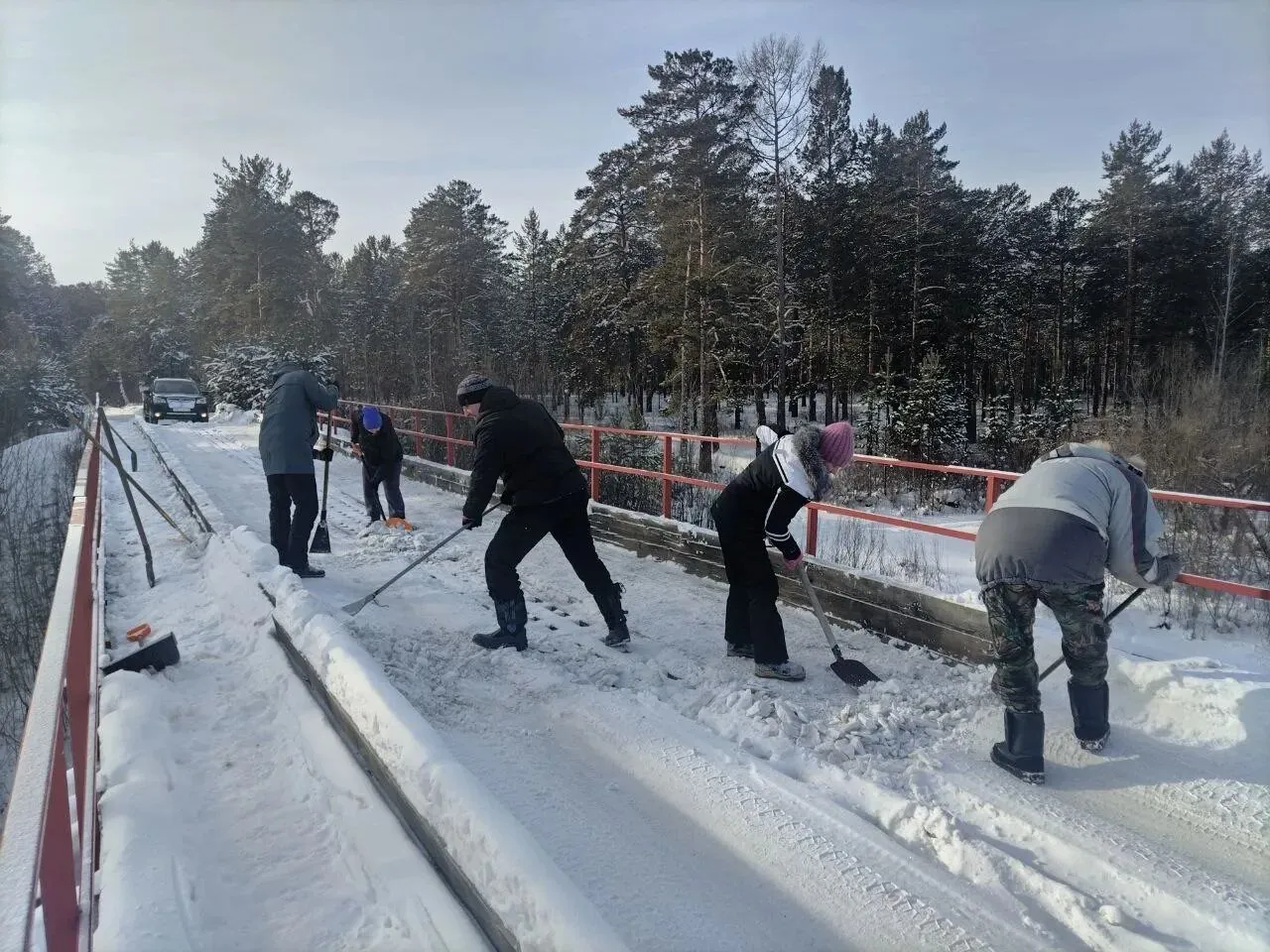 Как расчищают аварийный мост зимой: силами садоводов и… только садоводов. Администрация, видимо, в отпуске.
